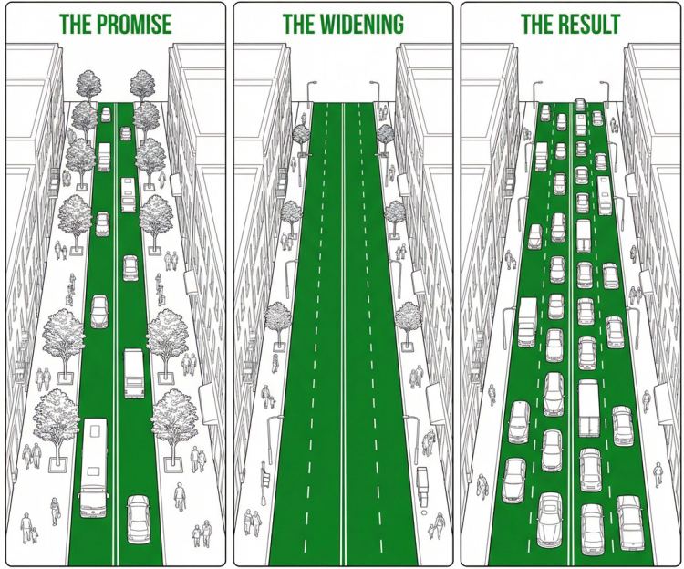 Road Widening Is a Trap: Why More Lanes Lead to More Traffic